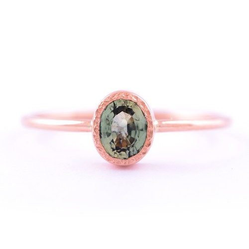 PIERŚCIONEK W RÓŻOWYM ZŁOCIE-ZŁOTY PIERŚCIONEK Z ZIELONYM SZAFIREM - OWALNY PIERŚCIONEK ZARĘCZYNOWY